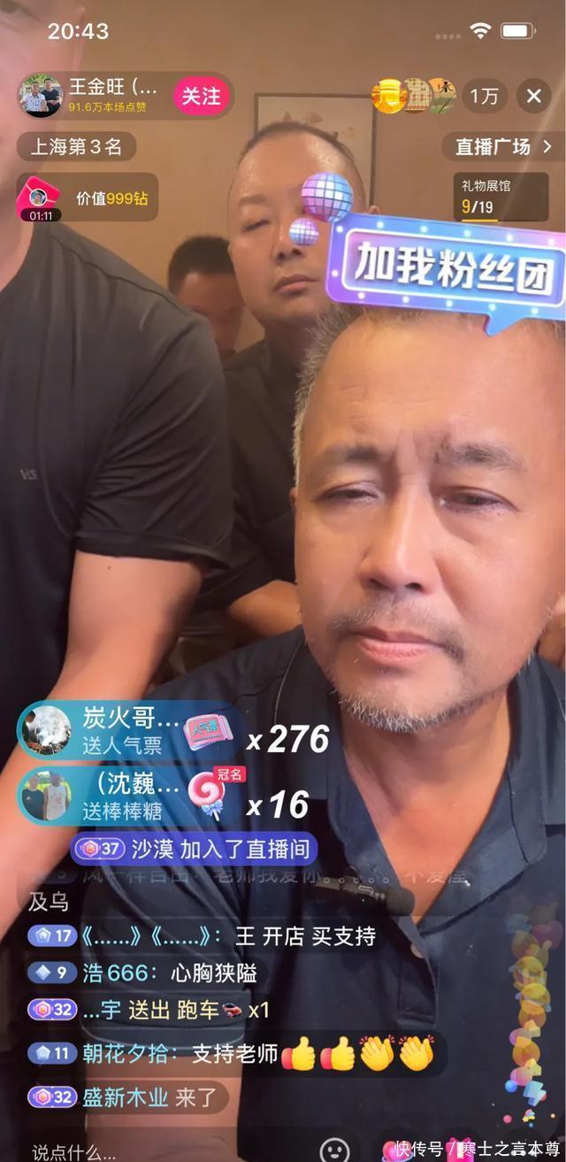 晚上8点半,沈巍送别粉丝之后,就参加直播镜头,为王金旺站台,屁股还没坐稳,直播间里跑车飞机满屏飞,直播间在线东说念主数涨至一万多东说念主。