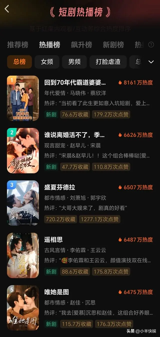 这部餍足级的短剧无用过多先容了,热度一直不绝到目下,赢得了餍足级的爆火经由!近期热度下落(这个太闲居了),但不绝到目下果然仍是是破记录了!