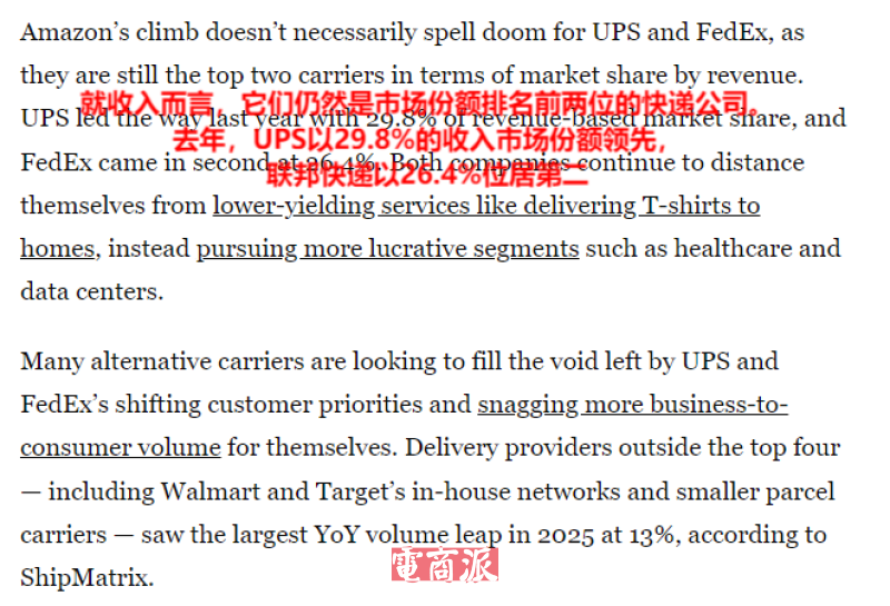 亚马逊寄递包裹量全好意思第一 图源:supplychaindive