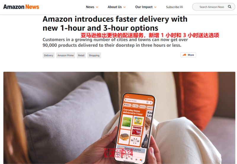 与此同期,亚马逊积极延伸物流行状,速率、广度、深度通盘铺开。就在最近,亚马逊晓谕,将面向好意思国用户推出1小时和3小时投递处事,涵盖食物、家居清洁、电子家具等9万多种商品。