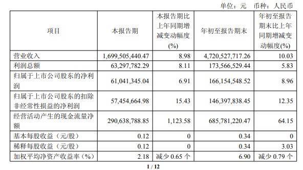 举座来看,前三季度融会股份累计兑现营收47.21亿元,同比增长10.03%;累计兑现归母净利润1.66亿元,同比增长8.96%,扣非后累计净利润达到1.46亿元,同比增长12.35%,增长态势捏续贯通。