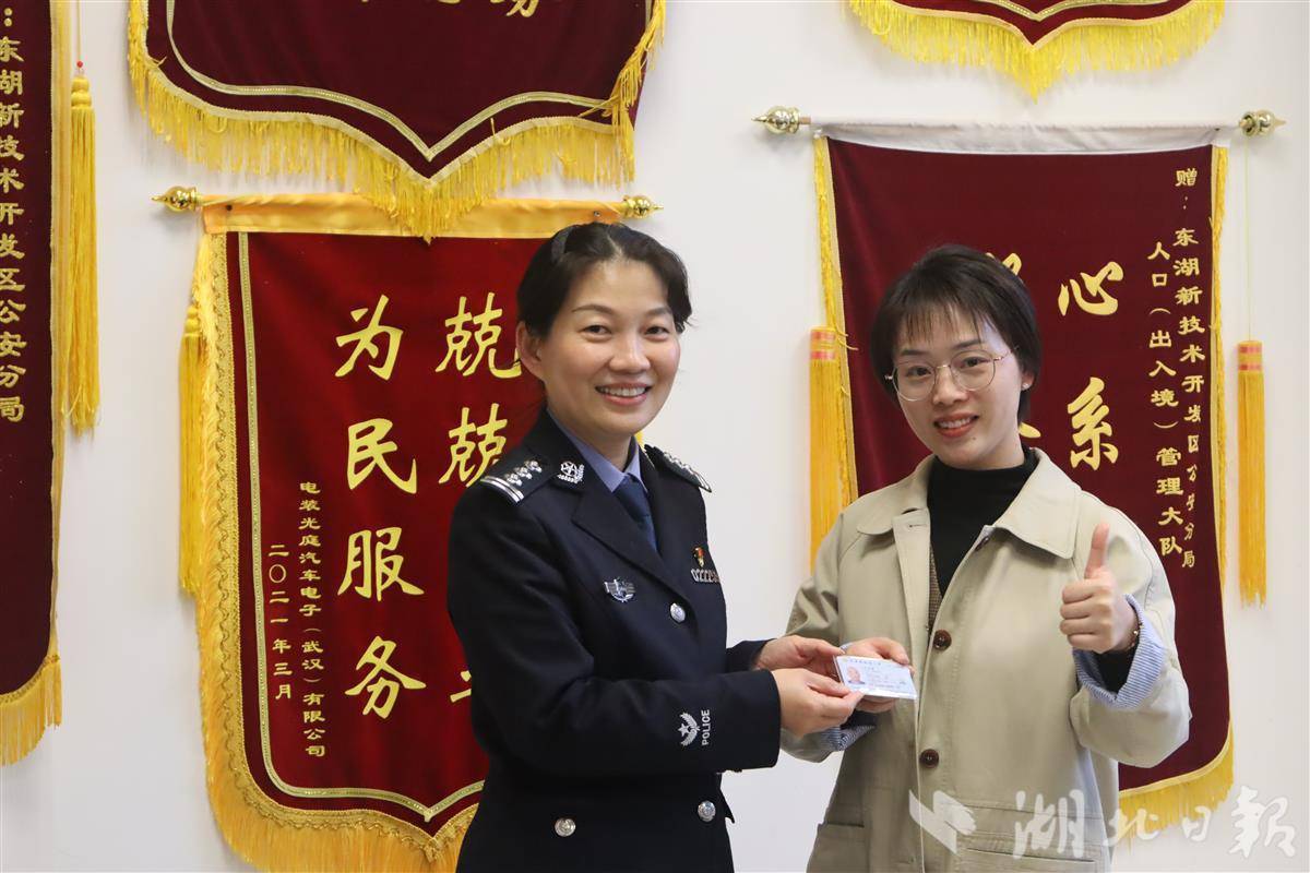 东湖高新区公本分局政务劳动进出境大队民警披发“往来港澳东说念主才签注”。